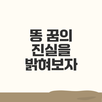 꿈은 우리의 무의식이 드러나는 공간으로, 때로는 신비로운 상징으로 가득 차있습니다. 특히 '똥 싸는 꿈'은 희귀하면서도 여러 가지 해석이 존재하는 흥미로운 주제입니다. 꿈 속에서 똥을 싸는 행동에 따라 그 의미는 크게 달라질 수 있습니다. 이번 섹션에서는 각각의 상황에 대해 상세히 살펴보겠습니다.